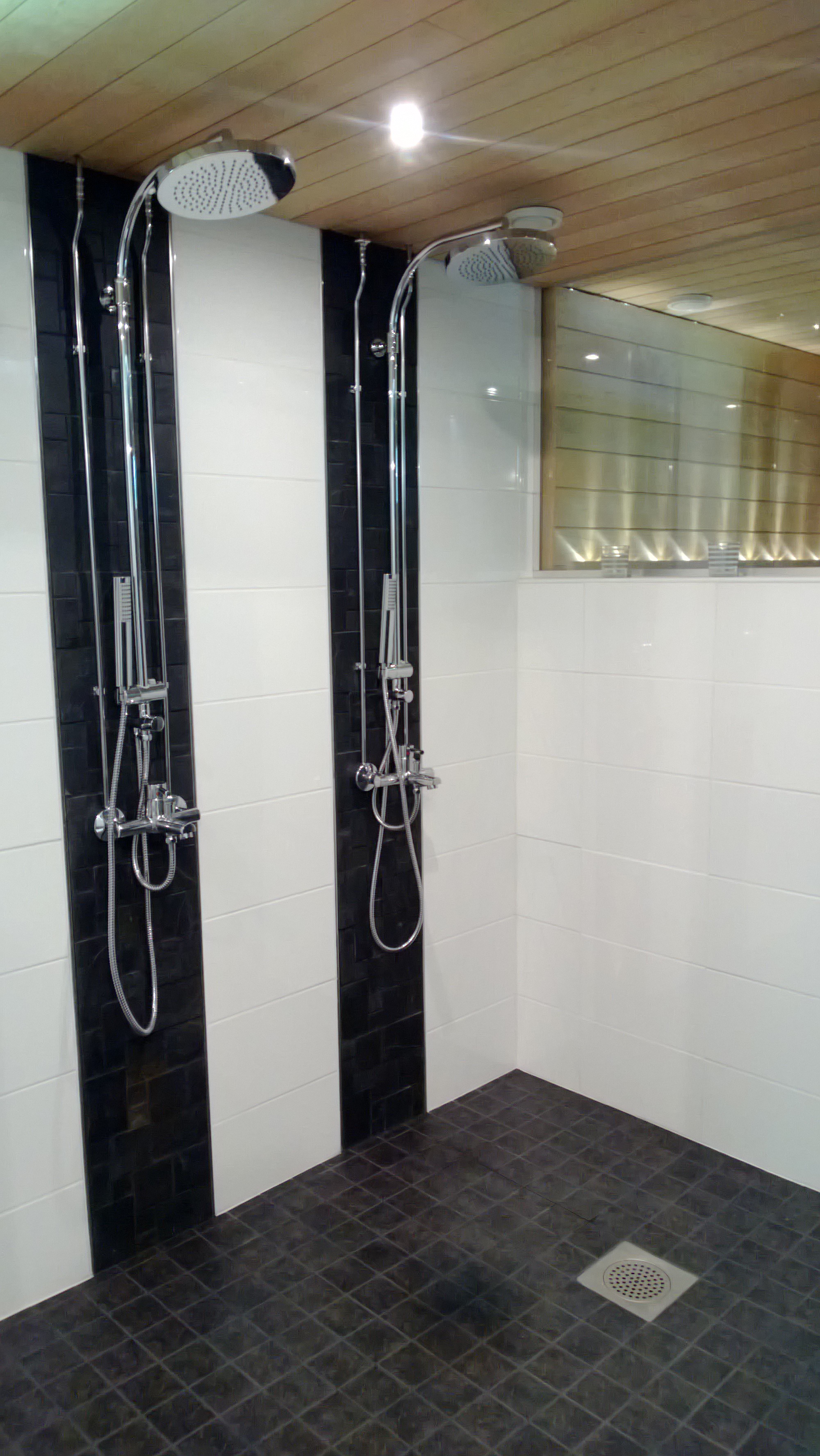 Suihkuja vastapäätä oleva seinä verhoiltiin myös liuskekivellä.
